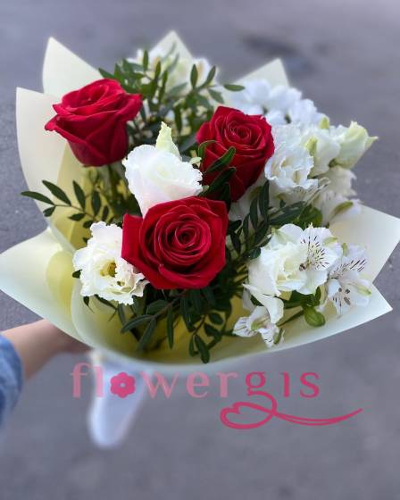 Очень нужный букет, подойдет как для повода, так и без...Интересное сочетания цветка, придаст дополнительный приятный аромат - данному букету, а свежесть срезанных растений, заставить вас, долго любоваться на эту красоту
