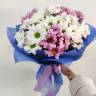 Этот букет передаст запах целого поля, усыпанного ромашками - они настолько свежие, что получатель подумает, что их только сорвали, а вдохнув их аромат, на секундочку окажется на том самом поле из ромашек.